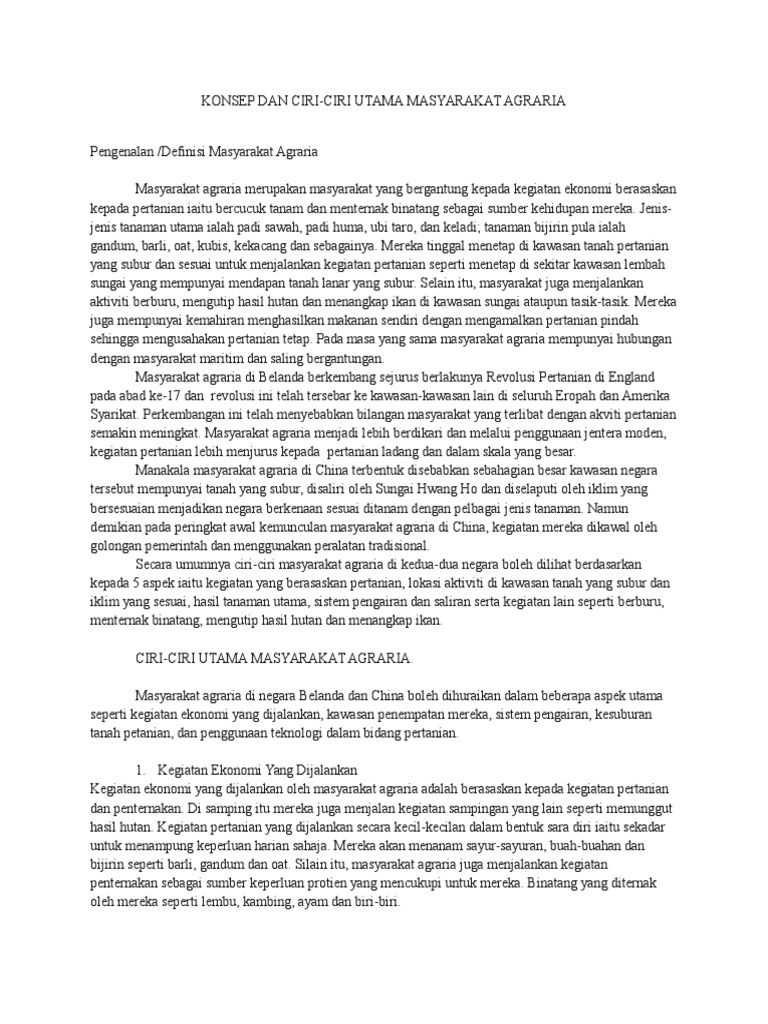 Sejarah Docx Huraikan Definisi Dan Ciri Ciri Masyarakat Agrarian Di China Pendahuluan Masyarakat Agraria Ialah Masyarakat Yang Hidup Berasakan Course Hero