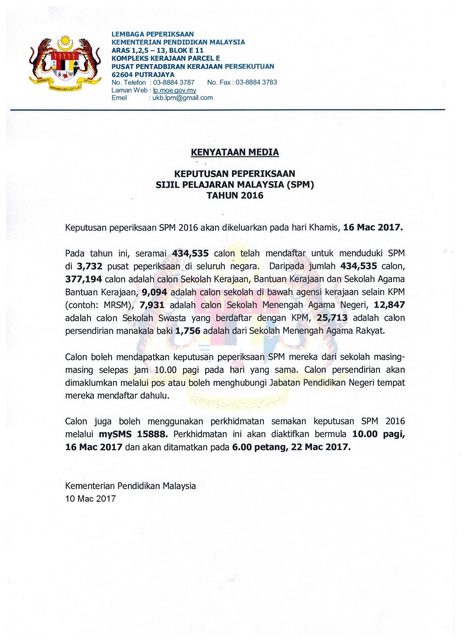 Mrsm Kuching Sur Twitter Kenyataan Media Keputusan Peperiksaan Sijil Pelajaran Malaysia Spm Tahun 2016