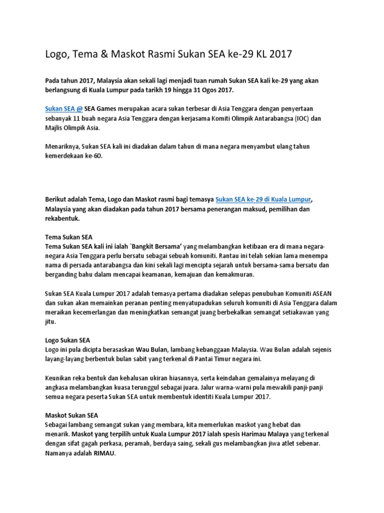 Logo Tema Maskot Rasmi Sukan Sea Ke 29 Kl 2017
