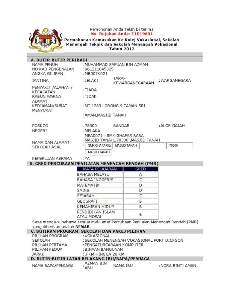 Permohonan Kolej Vokasional Kv 2019 Syarat Kemasukan Terkini